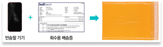 2. 노란색 안전봉투 안에 ‘반송할 기기'와 ‘회수용 배송증'을 함께 넣어 봉인해 주세요.